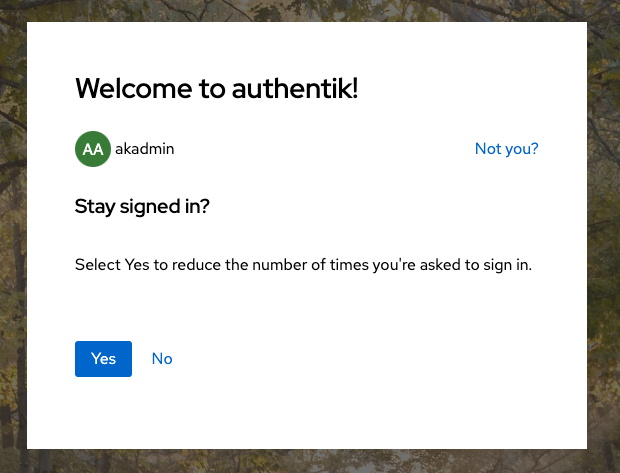 • Stay signed in offset: When this is set to a higher value than the default seconds=0, the user logging in is shown a prompt, allowing the user to choose if their session should be extended or not. The same syntax as for Session duration applies.